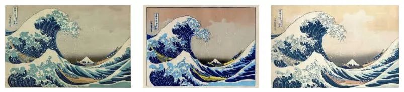 这里再举一个例子,日本江户时代浮世绘画家葛饰北斋这幅著名的《神奈川冲浪里》。